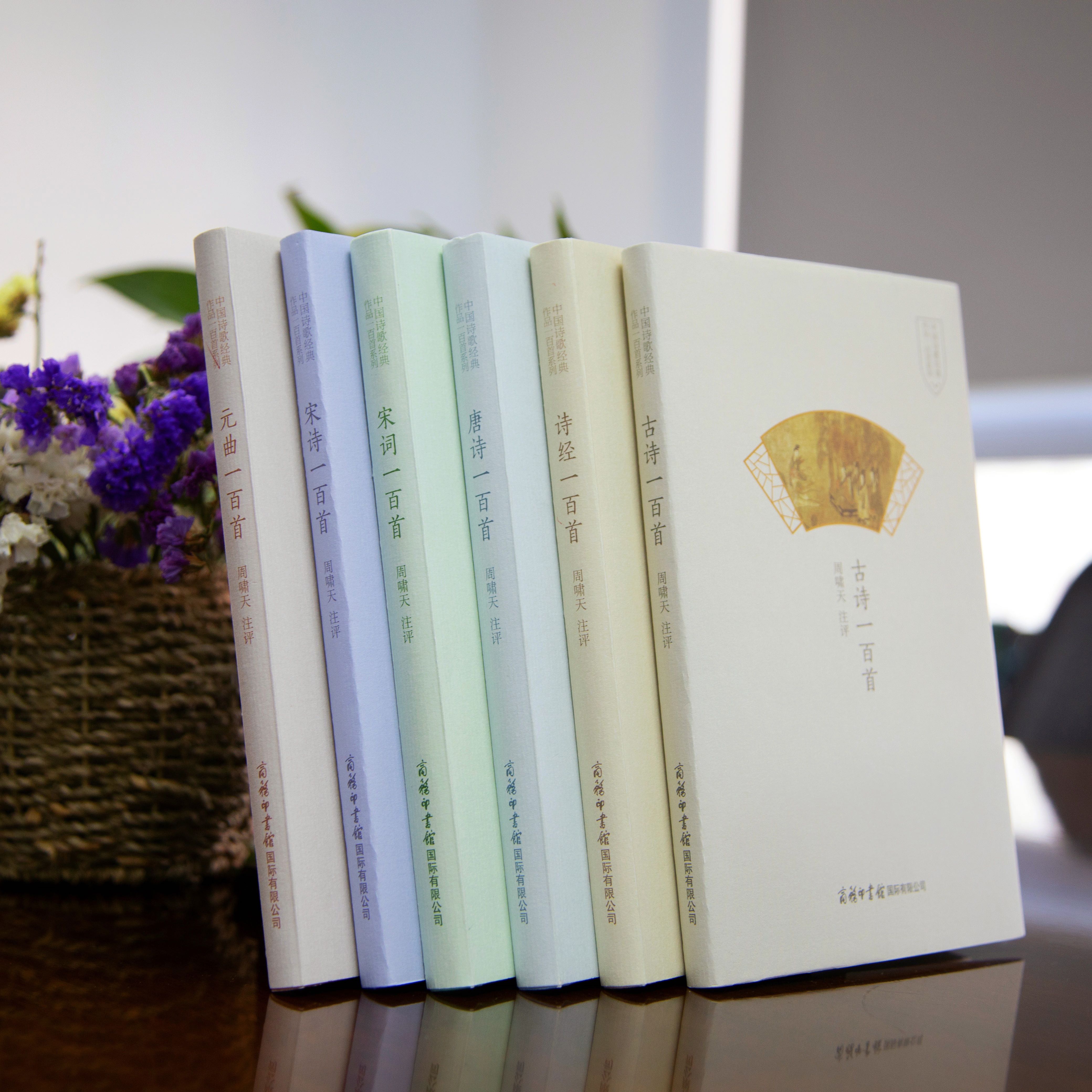商務印書館國際有限公司所出版的“中國詩歌經典作品一百首系列”叢書共九冊,包括《古詩一百首》《詩經一百首》《唐詩一百首》《宋詞一百首》《宋詩一百首》《元曲一百首》《明清詩一百首》《今詩一百首》《新詩一百首》。
